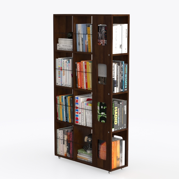 Inspired by minimalist design and functional living, this bookshelf features warm wood grain texture and layered open shelves. Layers of open shelves showcase a mix of books and decor, with rich brown wood tones creating a cozy, organized vibe. Perfect for modern living rooms or home offices, blending sleek lines with rustic warmth, it offers ample compartments for books and personal items, balancing aesthetics with practical storage.