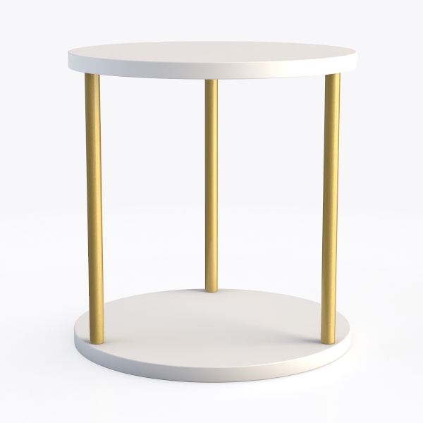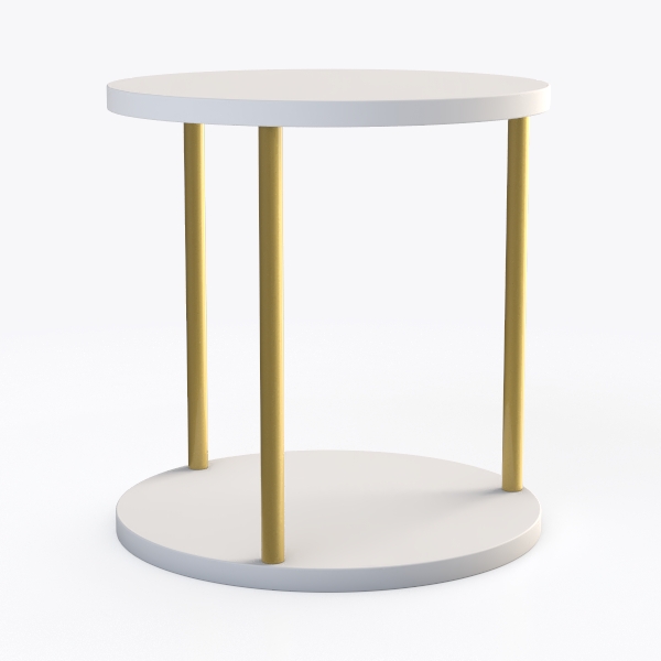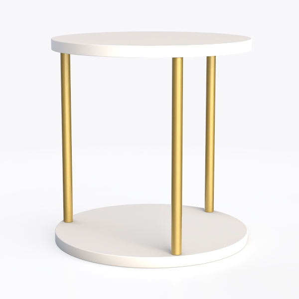 Drawing inspiration from minimalist geometric harmony and warm metallic accents, this elegant side table features smooth, matte white surfaces contrasting with warm, polished gold legs, creating a clean yet refined visual appeal. Ideal for modern minimalist or contemporary living rooms, pairing beautifully with marble coffee tables and gold-accented floor lamps. Spacious, flat surfaces accommodate drinks or small decor, while sturdy gold legs ensure stability with a light, airy presence.