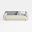 This sofa embodies a design philosophy rooted in organic minimalism, taking cues from the gentle curves of natural forms—think smooth river stones or softly billowing clouds—to infuse the space with a serene, approachable energy. Visually, it strikes a harmonious balance: the light gray upholstery on the back contrasts softly with the warm beige of the seat, creating an airy, neutral palette that brightens any room. The tactile experience is equally inviting—running a hand over the fabric reveals a smooth, breathable texture, soft yet durable, while the curved armrests and rounded edges add a cozy, hug-like quality, making it feel both intentional and comforting.