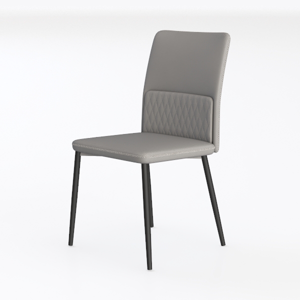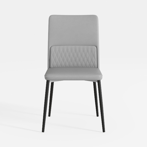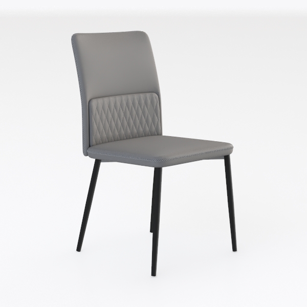 Inspired by clean lines and understated elegance, this chair merges modern minimalism with subtle sophistication. Its smooth gray upholstery, detailed with diamond-quilted patterns, offers a soft touch and visual depth, while black metal legs add sleek contrast. Perfect for a contemporary dining room or living space, it pairs beautifully with wooden tables or marble accents. The contoured backrest and generous seat depth ensure all-day comfort, balancing style and practicality.