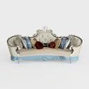 This elegant sofa draws inspiration from classic European design, showcasing a perfect blend of traditional craftsmanship and modern aesthetics. The intricate detailing on the backrest and armrests, accentuated by the luxurious fabric, creates a sense of opulence and sophistication. The plush, tufted upholstery invites a warm and inviting atmosphere, while the soft palette of colors enhances its visual appeal.