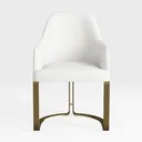 Inspired by mid-century modern minimalism, this chair features soft, smooth white upholstery and sleek gold metal legs, blending timeless elegance with contemporary flair. The velvety texture invites gentle touch, while clean lines and warm gold accents add luxury. Ideal for modern-luxe living or dining, it pairs with marble tables and brass lighting. A generously sized seat and curved backrest ensure all-day comfort, making it both stylish and practical.
