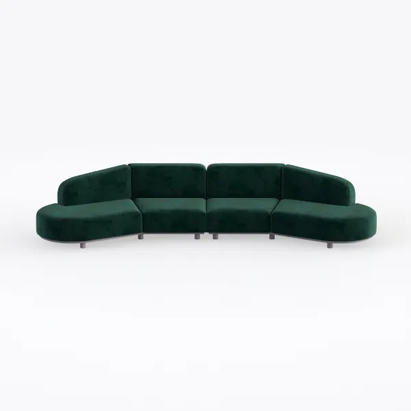 Inspired by the organic softness of natural forms, this piece draws from the gentle curves of blooming petals or floating clouds, creating a design that feels both sculptural and approachable. Its rich emerald-green upholstery shimmers subtly, hinting at a plush, velvety texture that invites touch—warm and inviting against bare skin. The silhouette, with rounded, layered armrests and a flowing backrest, blends modern artistry with comfort, avoiding sharp edges to wrap the eye in softness.