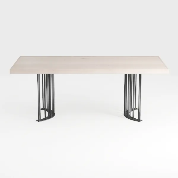 Inspired by geometric minimalism, this piece blends a warm, smooth wooden top with sleek black metal legs. The light-toned surface, with subtle natural grain, contrasts beautifully with the matte black frame, creating a clean, balanced aesthetic. Perfect for a modern minimalist living room or home office, it pairs well with soft textiles and neutral decor. A spacious wooden surface offers ample space, while slender legs add an airy feel, making it both functional and visually striking.