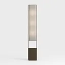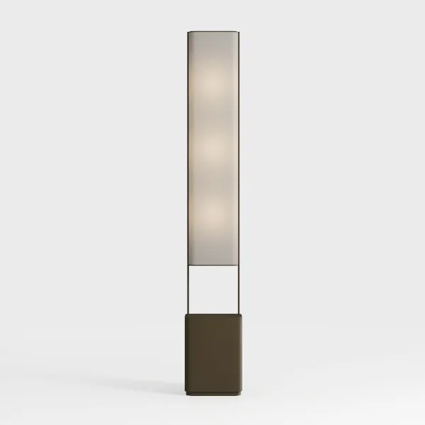 A 3D model of a Floor Lamp, featuring a slender cylindrical metal frame, frosted glass shades, and a dark brown base, with a modern minimalist aesthetic. It has clean lines and is suitable for living rooms or bedrooms as ambient lighting.