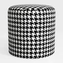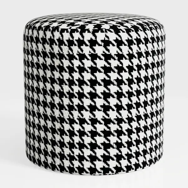 Inspired by timeless houndstooth patterns, this round footstool blends classic elegance with modern charm. Its soft, textured surface and bold black-and-white print create a striking visual rhythm, balancing crisp lines with warm tactile appeal. Perfect for modern, minimalist, or mid-century spaces, it pairs beautifully with marble or metallic accents, adding sophistication to living rooms or bedrooms. Sturdy and comfortable, it serves as extra seating or a chic surface for small decor.