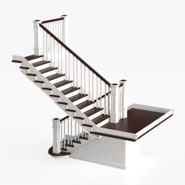 A 3D model of a Stairs, featuring wood and white painted materials and a classic, minimalist design aesthetic. It has a detailed 3D structure and is suitable for interior design, architectural visualization, and home decor.
