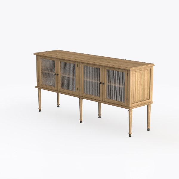 Inspired by the timeless allure of 1950s American mid-century modernism, this piece marries nostalgic charm with contemporary practicality. Crafted from sustainably sourced oak, its frame boasts a warm, honeyed patina, with visible wood grain patterns that tell a story of natural authenticity—each knot and ridge feels tactile, smooth to the touch yet inviting, as if wrapped in the earth’s own texture. The four slim, tapering legs, finished in a matte black, add a subtle industrial edge, while the frosted glass doors, framed by thin, light oak panels, filter light softly, casting a gentle, diffused glow that transforms the room’s ambiance.