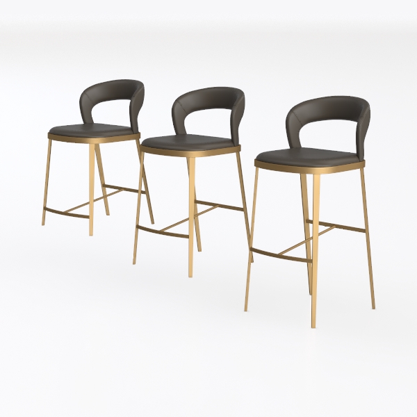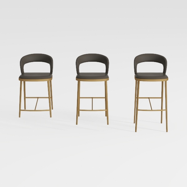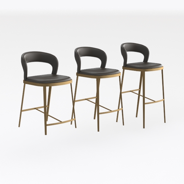 These stools are perfect for a sleek kitchen island, a minimalist bar counter, or a cozy nook in a modern café. They complement both mid-century modern and industrial-inspired spaces, their brass accents adding a hint of understated luxury that elevates any setting without overwhelming it.