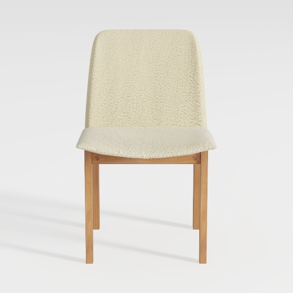 Crafted with a harmonious blend of tactile softness and structural clarity, this chair draws inspiration from the warm minimalism of Scandinavian design, balancing organic comfort with understated sophistication. The seat and backrest are upholstered in a creamy, bouclé-like fabric that feels surprisingly lightweight yet deeply comforting—each touch reveals a subtle, textured pattern that catches light gently, creating a soft, diffused glow against its neutral hue. Its silhouette is defined by clean, angular lines: the back tapers subtly to a slight curve, while the wooden legs, finished in a warm oak tone, extend slim and steady from the base, enhancing the chair’s sense of lightness.