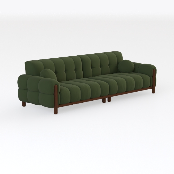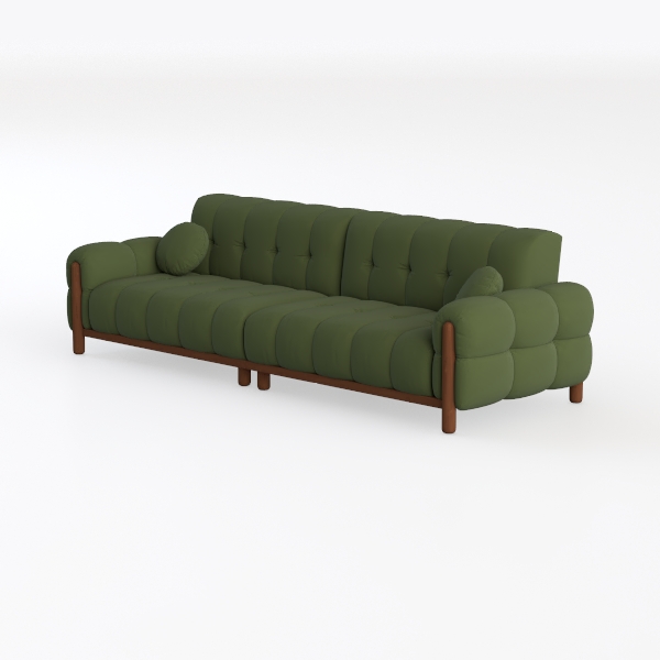 Inspired by the principles of modern minimalism, this elegant sofa combines comfort and style seamlessly. The plush fabric in a rich green hue offers a fresh and inviting touch to any living space, while the tactile surface ensures a cozy feel. The visual appeal is heightened by the contrasting wooden frame, which adds warmth and sophistication, making it a centerpiece in contemporary décor.