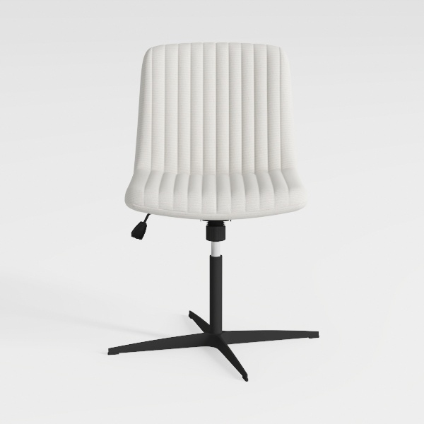 The seat, wrapped in a textured off-white fabric, features delicate vertical channeling that adds subtle dimension without overwhelming the eye—its surface is surprisingly resilient yet gentle to the touch, conforming comfortably to the body’s curves while maintaining a neat, tailored appearance. The neutral tone, paired with a sleek black metal base, creates a striking contrast that brightens any space, while the cross-legged design ensures stability and a light, airy presence, avoiding the bulkiness of traditional chairs.