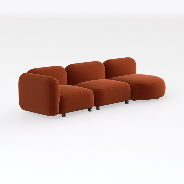 Introducing a stunning piece that redefines contemporary living spaces, this sofa draws inspiration from modern minimalism, blending sleek lines with inviting curves. The rich, burnt orange upholstery exudes warmth and sophistication, inviting you to sink into its plush embrace. Its soft texture not only enhances visual appeal but also offers a delightful tactile experience, making it a joy to touch and sit on.