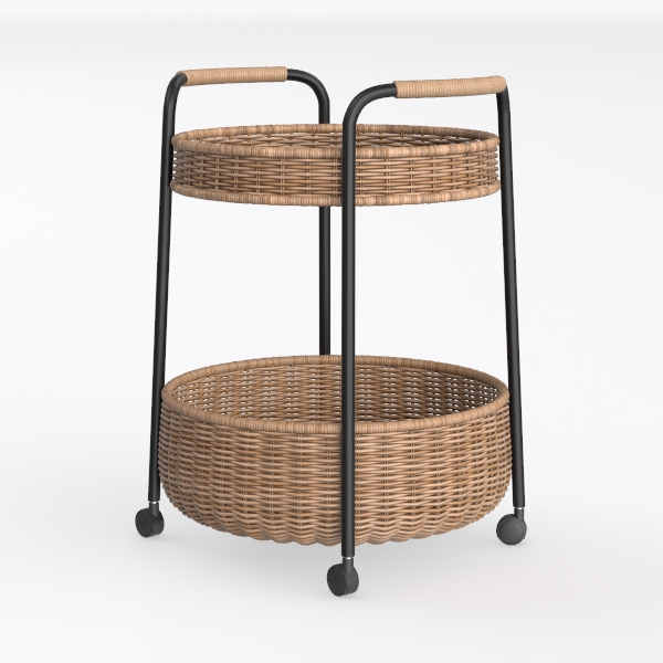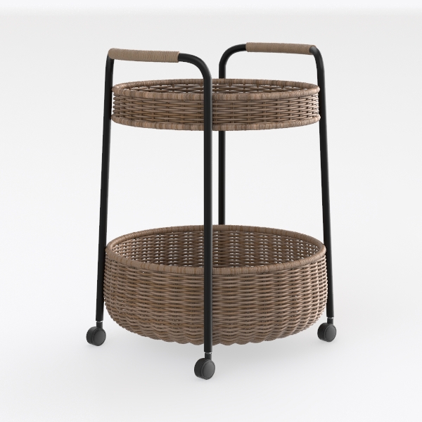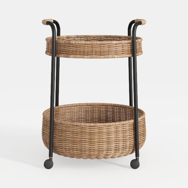 Perfect for a coastal-inspired living room, a bohemian dining nook, or a minimalist sunroom, it pairs beautifully with wooden coffee tables, jute rugs, and potted greenery, enhancing the room’s organic vibe. Equipped with smooth-rolling wheels, it offers easy mobility—repositioning effortlessly for gatherings, storing books in the study, or displaying succulents on the balcony. Two spacious, round baskets provide ample storage, blending practicality with the charm of natural materials, making this piece both a functional tool and a stylish decor element.