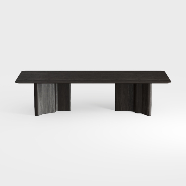 Crafted with a harmonious blend of architectural minimalism and organic artistry, this piece draws inspiration from the interplay of natural rock formations and modern geometric precision. Its design language is rooted in the soft, weathered edges of coastal cliffs—where wind and water carve fluid, undulating shapes—translated into a table that balances strength with dynamic visual rhythm.