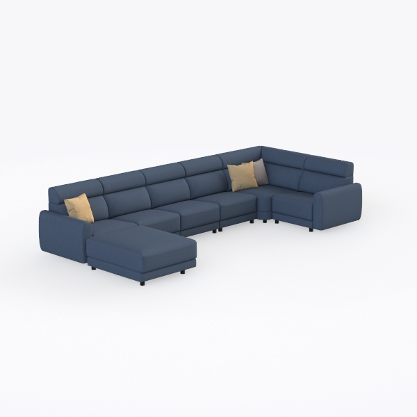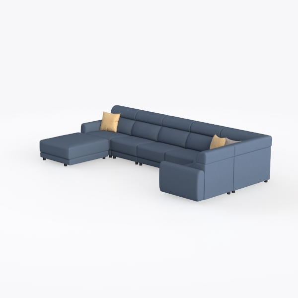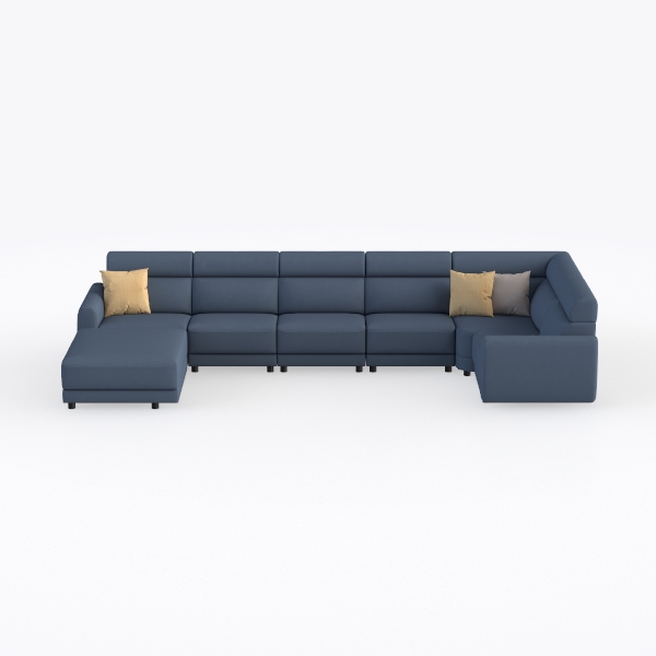 Introducing a modern sectional sofa that effortlessly blends style and comfort, inspired by contemporary minimalist design. Its sleek silhouette and clean lines create a sophisticated focal point in any living space. The rich navy upholstery exudes a sense of calm, while the soft, plush fabric invites you to sink in and relax.
