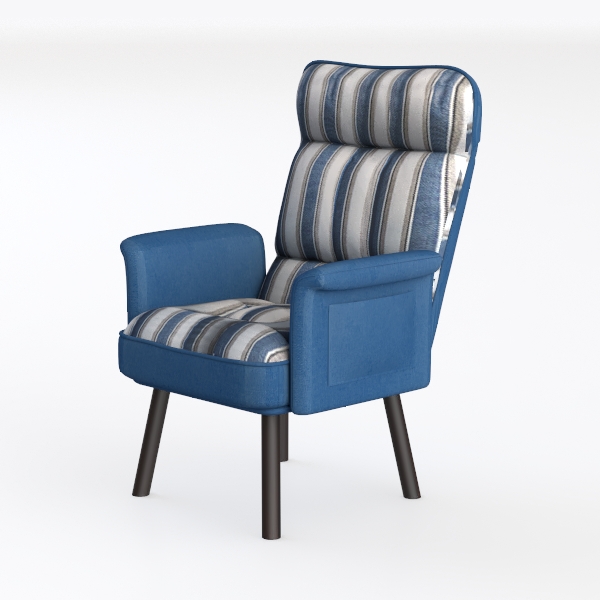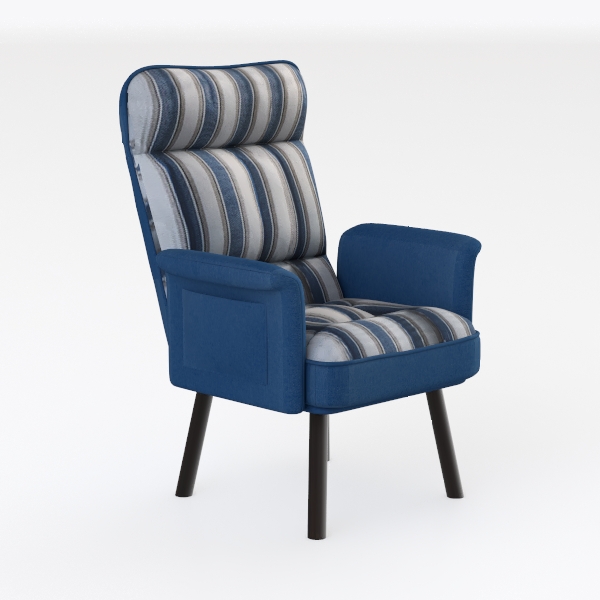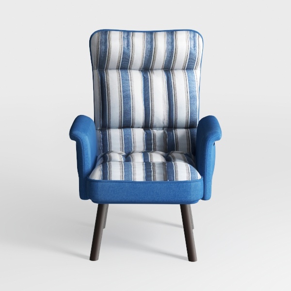 Inspired by coastal serenity, this armchair weaves together soft, wave-like stripes with a timeless form. Its upholstery, a blend of textured blue, crisp white, and muted gray, evokes the calm of a clear sky over water, while the solid blue armrests and base add a warm, grounded anchor—balancing light and shadow in every angle. The fabric feels delightfully soft and breathable, with a subtle weave that catches light gently, making the space feel airy and inviting.