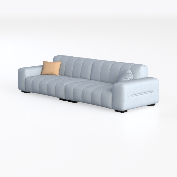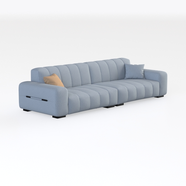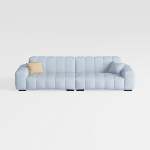 Inspired by contemporary design trends, this elegant sofa offers a perfect blend of comfort and style. Its soft, textured upholstery in a soothing light blue hue invites relaxation and adds a refreshing touch to any living space. The subtle grooves in the fabric not only enhance its visual appeal but also provide a tactile experience that is both inviting and luxurious.