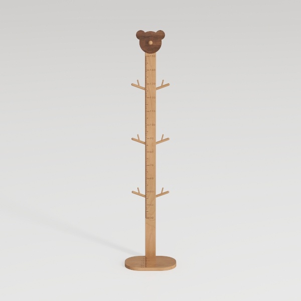 Multiple small, branch-shaped hooks at varying heights offer ample space for hanging hats, scarves, or small bags, while the integrated ruler markings along the stem serve as a sweet growth chart—tracking a child’s height milestones over time, making it both a storage piece and a heartfelt keepsake.