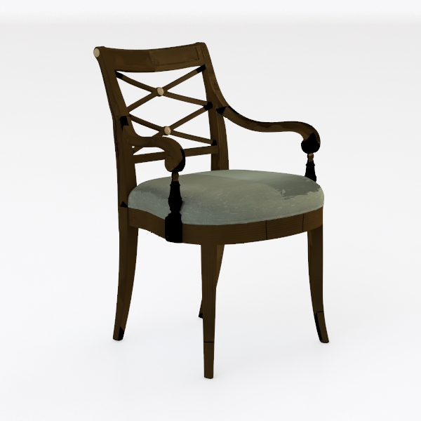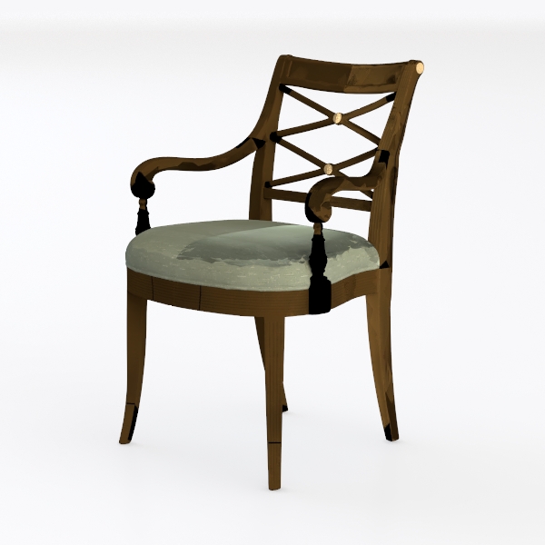 Functionality meets comfort here: the generously sized seat offers a relaxed sitting experience, while the curved armrests provide natural support for the arms during long conversations or meals. The sturdy, tapering legs, finished with subtle beveled edges, ensure stability, and the chair’s balanced weight distribution makes it suitable for both formal dining and casual lounging, blending practicality with timeless charm.