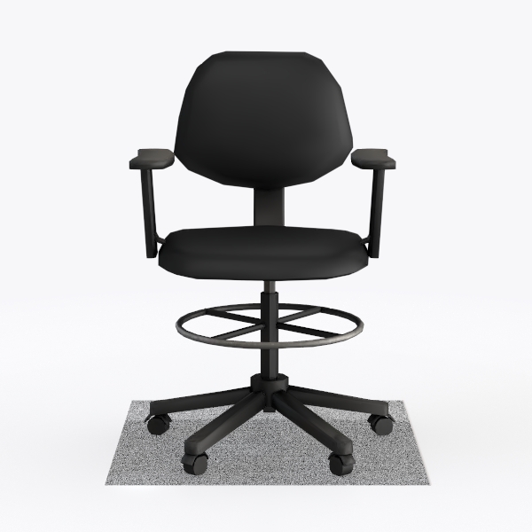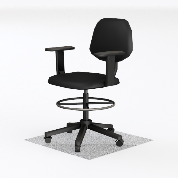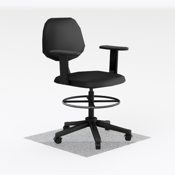 Visually, the chair makes a clean, uncluttered statement: its angular lines and consistent black hue create a streamlined look, making it a subtle focal point in any setting. The five-stud metal base, paired with smooth-rolling caster wheels, ensures easy mobility, while the integrated footrest ring adds an extra layer of comfort, allowing legs to rest naturally during long hours of work or relaxation.