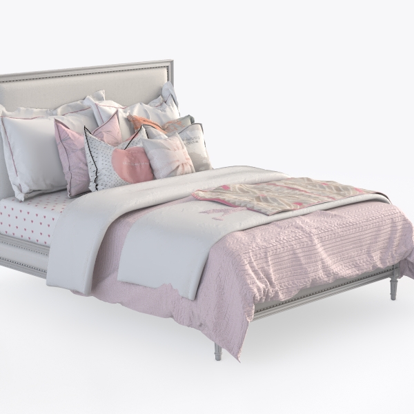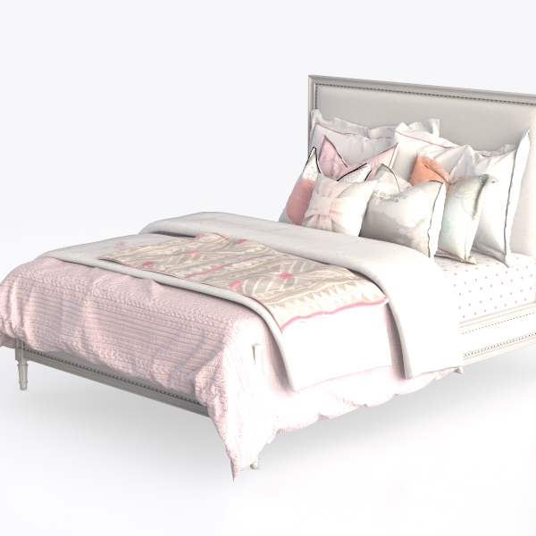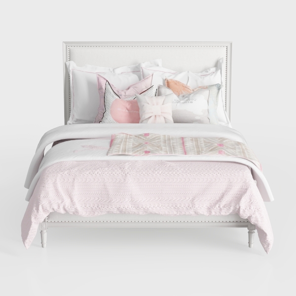 Inspired by the soft, sunlit warmth of a cozy cottage and the understated elegance of classic design, this bedroom set merges timeless charm with modern comfort. The headboard, upholstered in a smooth, light-toned linen-like fabric with subtle nailhead trim, adds a touch of sophistication, while the quilt, in a soft blush hue with a delicate, woven texture, feels gentle to the touch and visually inviting. Pillows of varying sizes and textures—some with soft linen, others with subtle embroidery and a bow-detail accent—layer harmoniously, creating a balanced, welcoming look.