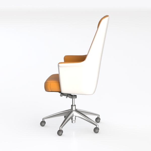 Crafted with buttery-soft, warm amber upholstery that glides gently under the hand—its texture rich yet smooth, like fine leather—while the crisp white side panels add a clean, airy contrast, the chair’s silhouette is defined by sleek, unbroken lines. The high, contoured backrest curves to cradle the neck and upper back, while the wide, padded armrests slope softly, offering support for relaxed or focused moments. Light catches the subtle sheen of the upholstery, making the yellow pop against the white, creating a dynamic, uplifting focal point in any room.