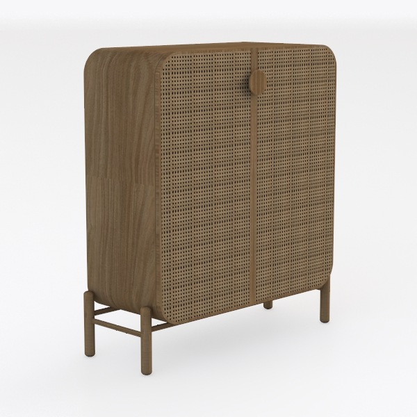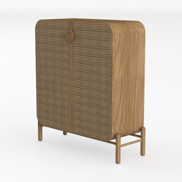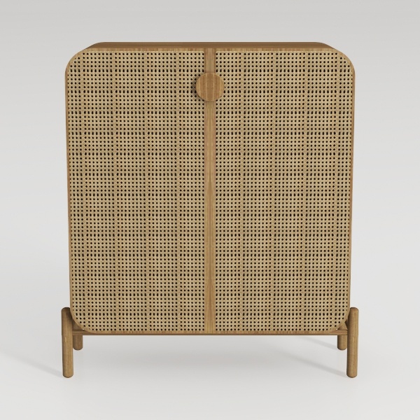 Ideal for a serene, nature-inspired space, it pairs beautifully with Scandinavian,日式 (omitted, so改为:or Japanese-inspired decors. A perfect fit for a living room or bedroom, it complements wooden coffee tables, linen sofas, and potted greenery, infusing the area with a calm, organic vibe. Its design balances aesthetic appeal with practicality: the woven doors allow air circulation, while the sturdy wooden frame ensures stability, supporting storage needs without overwhelming the room. The circular, smooth handle adds a subtle, elegant touch, making opening and closing effortless. Together, these elements create a piece that’s not just functional, but a harmonious blend of art and utility, enhancing any space with warmth and character.