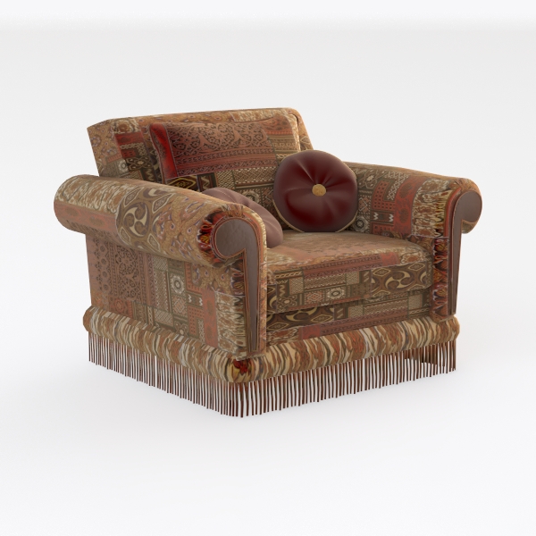 This armchair draws inspiration from traditional craftsmanship and cultural motifs, seamlessly blending artistry with functionality. Covered in a rich, patterned fabric, it evokes a warm, inviting atmosphere, perfect for cozy gatherings. The texture offers a delightful touch—a soft, plush feel that invites you to sink in and unwind.