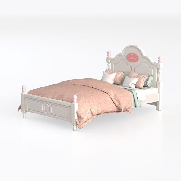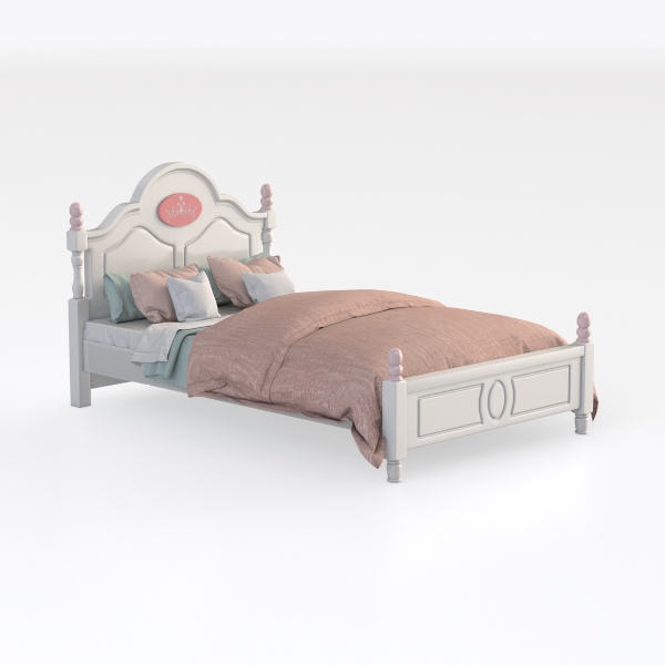 Drawing inspiration from classic fairy tale aesthetics, this piece captures the gentle magic of a princess’s sanctuary. The frame, crafted from smooth, subtly grained wood, wears a crisp white finish that feels fresh and airy, while the curved headboard—adorned with a soft pink plaque featuring a delicate floral pattern—adds a touch of whimsy. The bedspread, a warm blush hue with a textured weave, invites gentle touches, its soft fabric promising cozy, restful nights, while the mix of white and blush pillows creates a balanced, inviting layering.