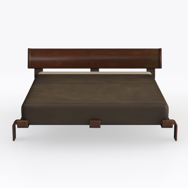 This piece draws inspiration from the harmony of Scandinavian minimalism and organic design principles, emphasizing clean lines and the inherent beauty of natural materials. The headboard, crafted from rich, warm-toned wood, features a smooth, gently curved profile that softens the room’s angles, with subtle grain patterns adding depth without excess detail. The bed frame, with its angular, tapering legs—finished in a matching dark wood—strikes a balance between sturdiness and lightness, making the piece feel both substantial and airy. The upholstered base, in a muted, textured fabric, offers a tactile contrast: the soft, supple surface invites gentle touches, while the neutral hue keeps the focus on the frame’s sculptural form.