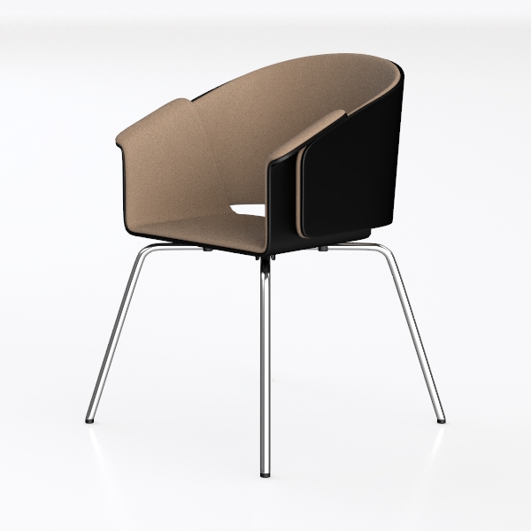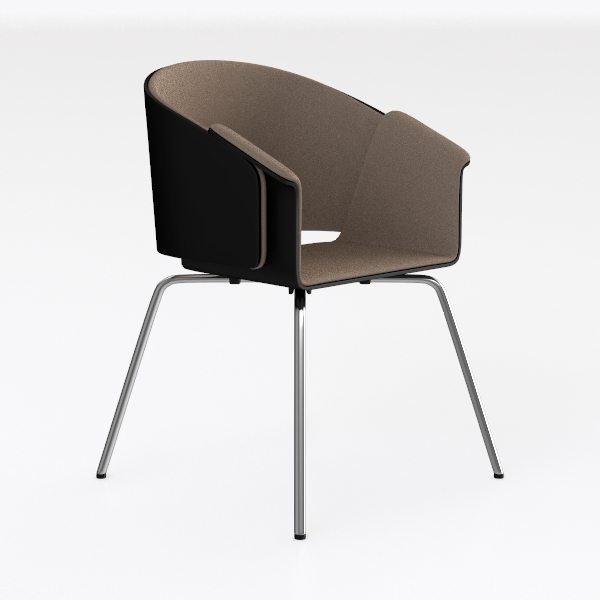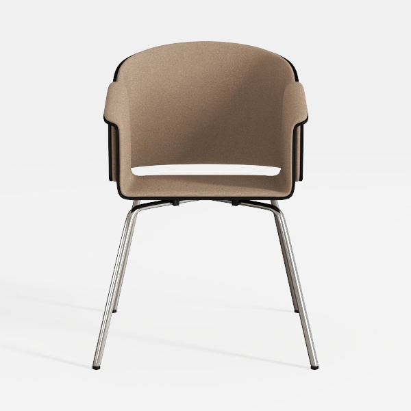 Visually, it embodies a minimalist ethos, with clean lines and balanced proportions that make it versatile yet distinctive. The curved armrests flow seamlessly from the backrest, providing subtle support while maintaining an open, uncluttered look, while the overall silhouette feels both grounded and light, thanks to the thin metal legs that don’t overpower the design.
