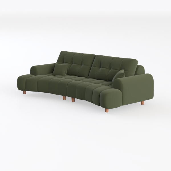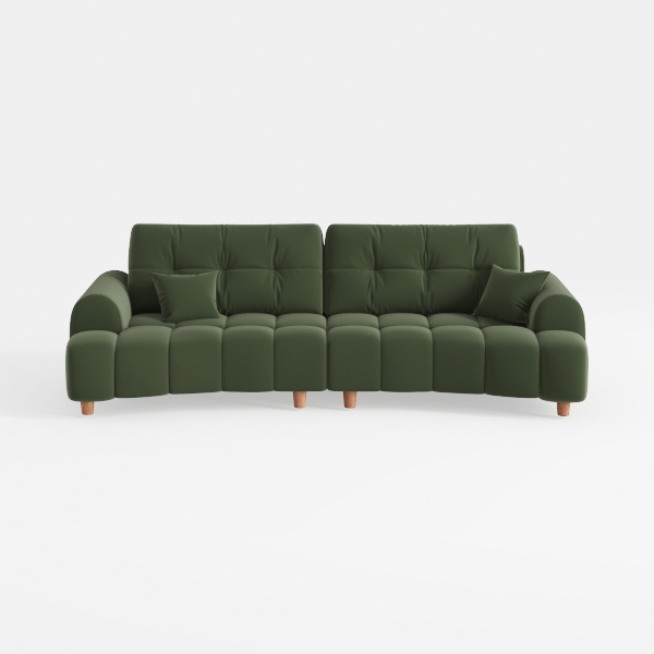 Inspired by contemporary design trends, this sofa embodies a perfect blend of comfort and style with its plush, tufted upholstery and soft, rounded contours. The rich green hue adds a touch of nature to any space, creating a calming environment that invites relaxation. The visual appeal lies not just in its color, but also in the inviting texture that beckons you to sink in and unwind.