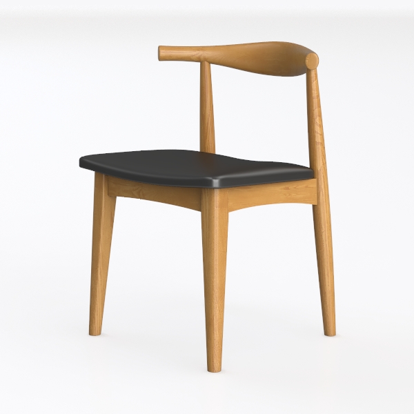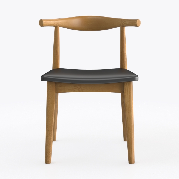 This elegant chair draws design inspiration from the organic, flowing lines of natural branches, embodying a timeless blend of Scandinavian minimalism and functional artistry. Its warm, smooth oak frame features gently curved armrests that echo the shape of outstretched limbs, creating a sense of lightness and balance. The plush black leather seat, contoured to cradle the body, feels cool to the touch yet inviting, offering a soft contrast to the chair’s solid wooden structure. Visually, its clean silhouette—with tapering, slender legs and a low, streamlined back—exudes understated sophistication, making it a versatile piece that elevates any space without overwhelming it.