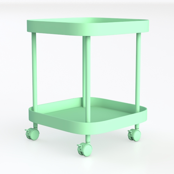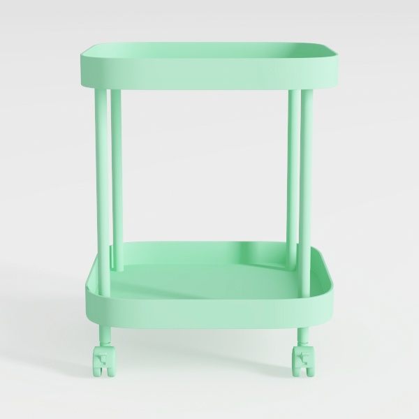 Inspired by the practicality of vintage trolleys, this piece reimagines utility with a modern minimalist flair. The soft mint green hue, paired with a smooth, matte surface, creates a fresh, uplifting vibe that lightens any room, while its streamlined, two-tiered design keeps the look uncluttered and elegant. The gently curved edges of the top and bottom shelves add subtle softness, balancing the slender, vertical legs that elevate the structure, giving it an airy, lightweight feel. Equipped with smooth-rolling casters, it glides effortlessly across floors, making it easy to reposition—ideal as a sofa-side snack station in a living room, a bedside caddy for books and drinks, or a mini bar cart in a cozy nook. Sturdy yet lightweight, its dual tiers offer ample space for daily essentials, blending style and functionality seamlessly into modern, Scandinavian, or bohemian-inspired spaces.