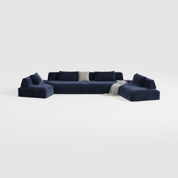This stunning sectional sofa draws its design inspiration from modern minimalism, offering a perfect blend of comfort and style. Crafted from luxuriously soft fabric, its deep navy hue evokes a sense of tranquility while adding a bold statement to your living space. The inviting texture invites you to sink in, making it an ideal spot for relaxation after a long day.
