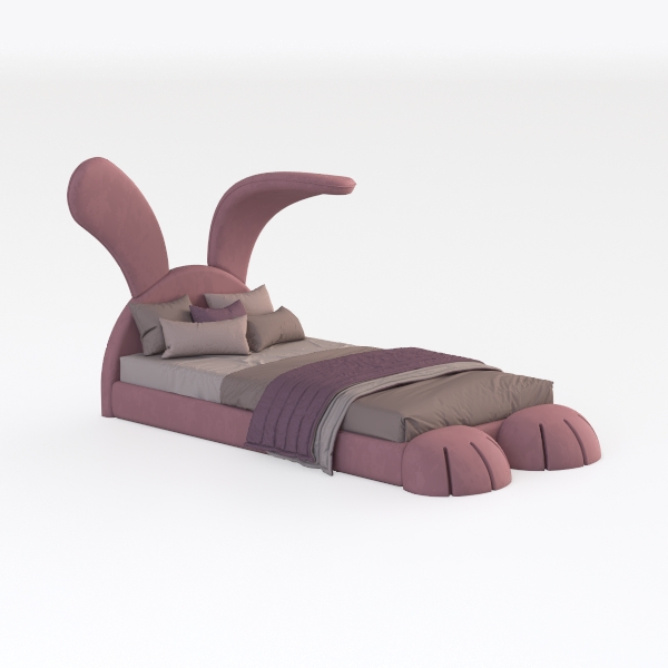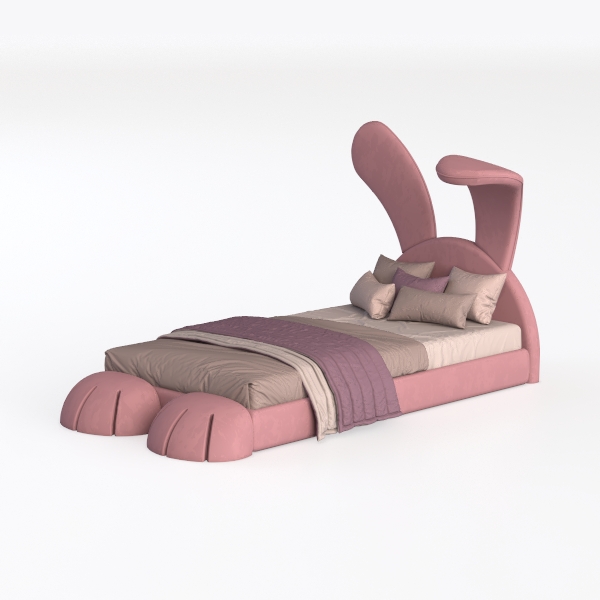 Inspired by the playful charm of woodland creatures, this bed blends whimsical animal aesthetics with functional design. Its headboard curves gently into two soft, rounded "ears," while the footboard mimics the shape of a rabbit’s paws, creating a cohesive, endearing silhouette that feels both imaginative and grounded.