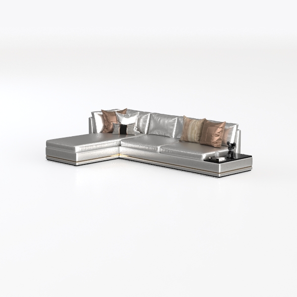 This luxurious sectional sofa draws inspiration from contemporary elegance, blending modern design with a touch of understated glamour. Its sleek metallic finish adds a futuristic vibe, while the plush cushions ensure a delightful tactile experience, inviting you to sink in and relax. The thoughtful combination of textures and colors—from soft golds to rich silvers—creates a visually striking focal point in any living space.