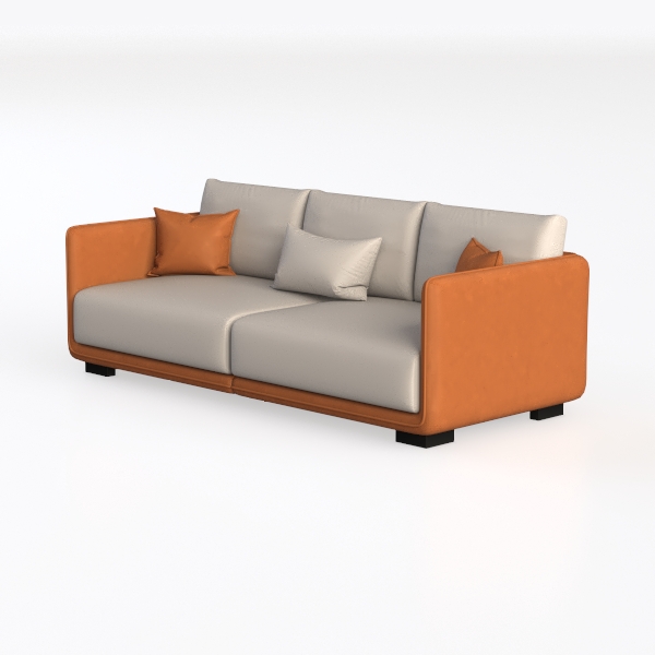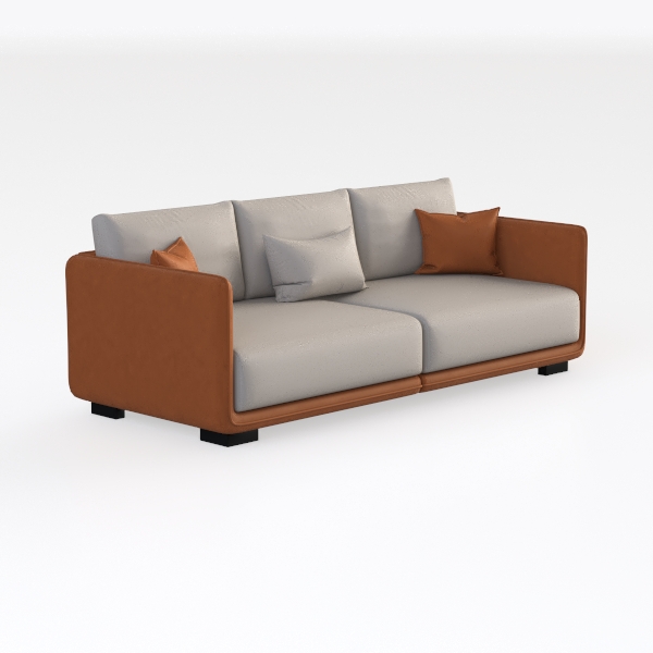Design inspiration blends the warmth of natural materials with the precision of modern design, creating a sofa that feels both intentional and effortless. The soft, light-gray upholstery—crafted from a textured, breathable fabric—invites touch, with a subtle sheen that catches ambient light, while the terracotta-orange armrests and accent pillows add a vibrant, earthy contrast, balancing the calm base tones. Visually, its streamlined silhouette, with gently curved armrests and a low, stable profile, exudes understated elegance, making it a versatile fit for spaces ranging from minimalist lofts to cozy family rooms.
