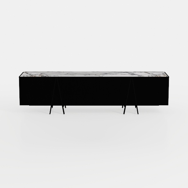 Inspired by minimalist geometry and natural stone, this piece features a smooth, cool marble top and matte black finish, with sleek black metal legs creating striking contrast. Ideal for modern minimalist or luxury living rooms, it pairs well with marble coffee tables and metallic accents, offering ample surface space for decor or media devices.