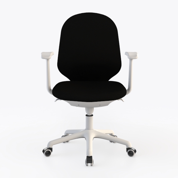 Designed with ergonomic focus and minimalist charm, blending functionality and clean, uncluttered lines. The black, breathable fabric seat offers a soft yet supportive touch, while the matte white metal frame adds a sleek, modern visual appeal, balancing style and comfort seamlessly. Perfect for modern, Scandinavian, or industrial-style home offices, it pairs effortlessly with wooden desks, geometric shelves, and understated decor. Equipped with smooth-rolling casters and an adjustable height mechanism, it ensures easy movement and personalized comfort for long work hours, making it a practical yet stylish addition to any workspace.