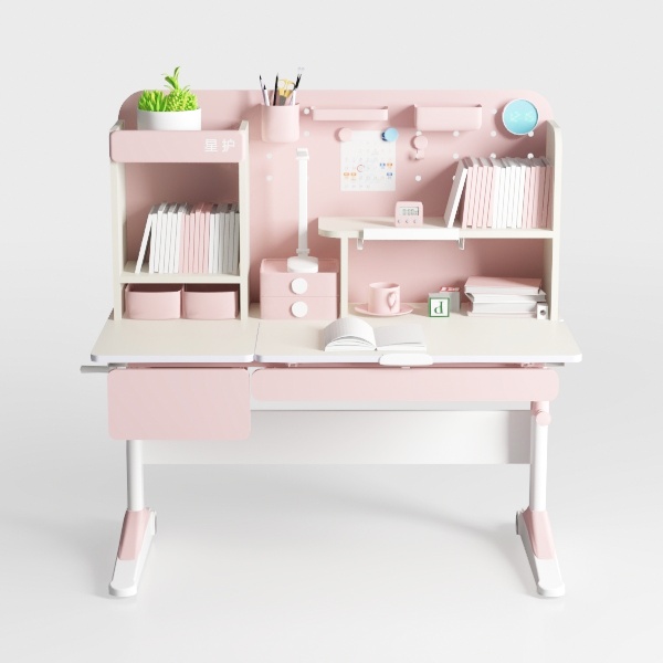 Inspired by soft, playful childhood dreams, this piece blends gentle aesthetics with practicality. Smooth, pastel pink and white surfaces with rounded edges create a warm, inviting vibe, like a cozy haven for learning. Perfect for a charming kids' room or a sweet bedroom, paired with soft lighting and cute decor. Spacious shelves and drawers neatly store books and stationery, while the wide desktop provides plenty of room for studying.