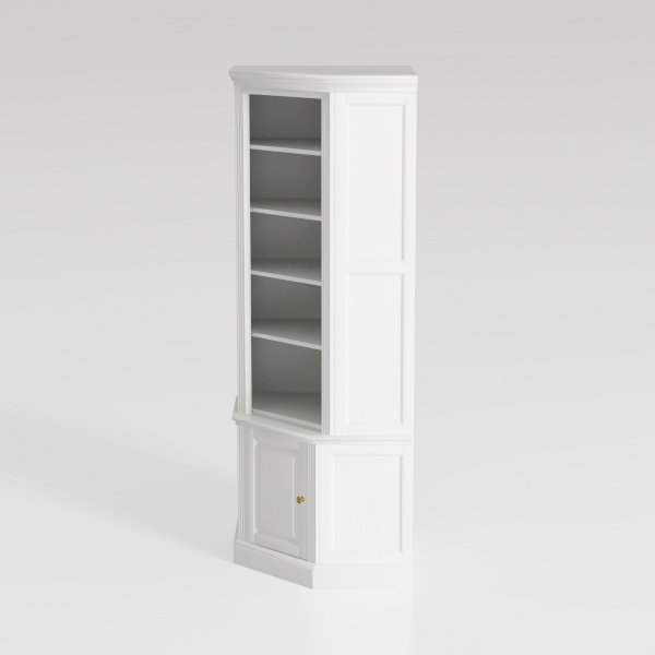 Inspired by classic corner cabinet designs, this piece blends functionality and elegance. Its smooth matte white surface radiates clean minimalism, while clear glass doors add transparency, highlighting displayed items. Ideal for modern, Scandinavian, or vintage living rooms, studies, or bedrooms, it features open shelves and a bottom closed cabinet, balancing display and hidden storage with sleek, space-saving appeal.