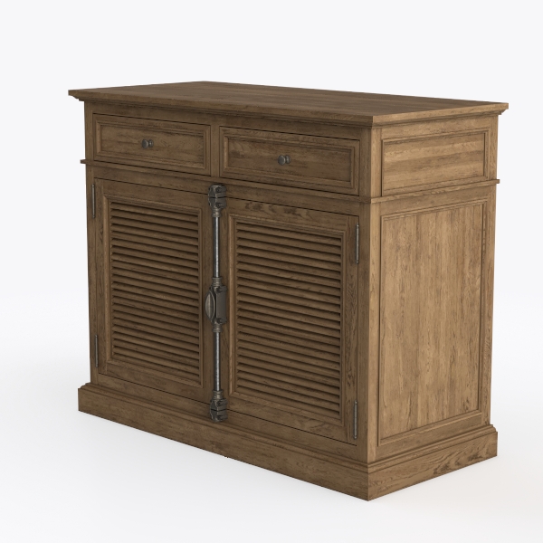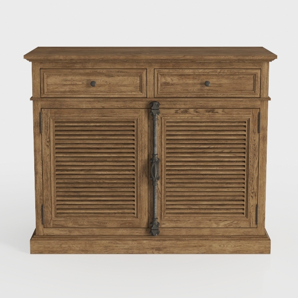 Designed with rustic farmhouse inspiration, this wooden cabinet features warm, weathered wood grain that feels smooth to the touch. Rich, earthy tones and metallic hardware add a balanced industrial charm, ideal for dining rooms or entryways. Spacious drawers and closed storage with ventilated shutters offer ample space for essentials, blending style and functionality seamlessly.