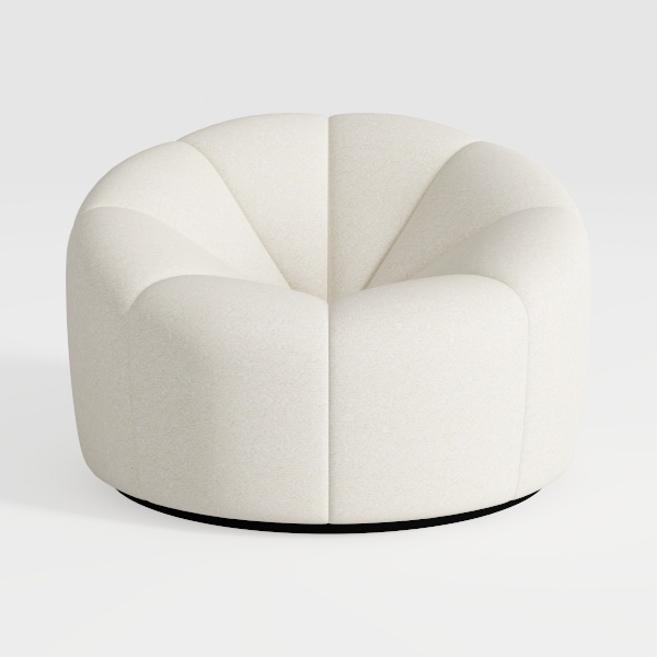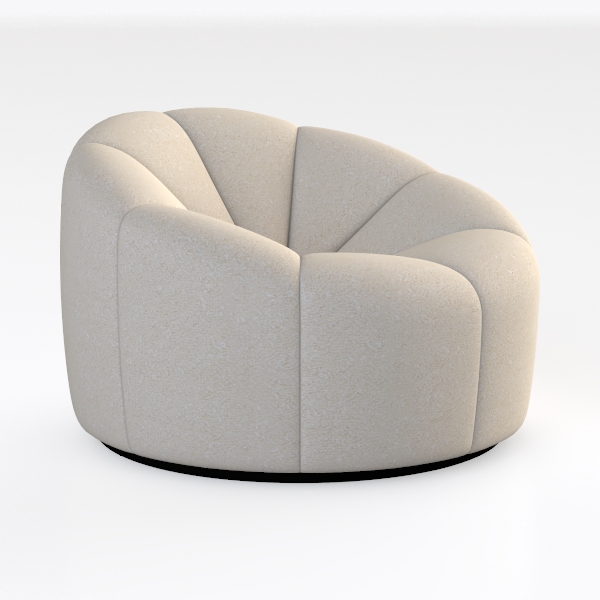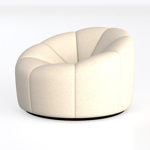 This elegant armchair draws design inspiration from the organic fluidity of natural forms, such as unfurling flower petals or the soft curve of a seashell. Its rounded silhouette, with gently indented sides and a seamless, sculptural shape, feels both modern and inviting, eschewing harsh angles for warm, enveloping lines.
