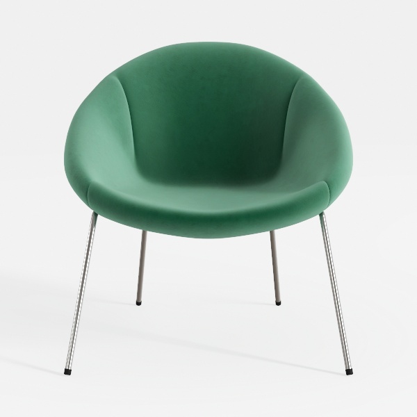 The upholstery, a rich, muted emerald green, catches the light with a subtle sheen, while its velvety texture invites touch, promising a soft, plush feel against the skin. This hue, neither too bright nor too dull, infuses the space with a sense of calm and sophistication, making it a versatile addition to various decor styles. Delicate, brushed metal legs rise from the base, their thin, tapering form adding a touch of modernity and lightness, while their matte finish contrasts beautifully with the chair’s soft curves.