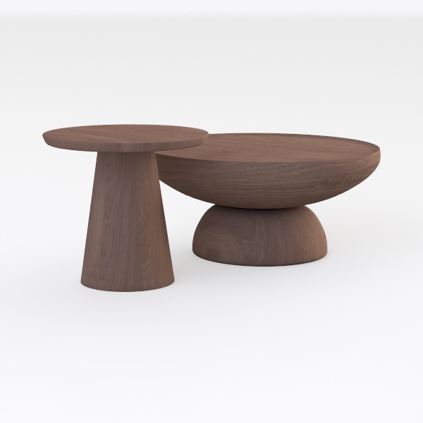 Crafted with organic inspiration from natural forms, this set of wooden tables features warm, smooth wood grain with a tactile, comforting feel. Its clean, minimalist silhouette adds a serene vibe. Ideal for modern minimalist or Scandinavian living rooms, complementing soft sofas, potted plants, and neutral rugs. The varied heights (small side and large center table) offer flexible placement, with a stable curved base ensuring both style and practicality.