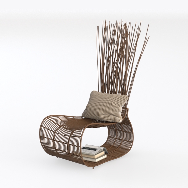 Crafted with natural-inspired design, its frame features slender, curved lines mimicking swaying grass, blending organic softness with geometric structure. The metal framework feels cool and sturdy, while the grass-like details add a warm, textural contrast, creating a light yet grounded visual appeal. Perfect for modern minimalist or bohemian living rooms, it pairs beautifully with oak coffee tables and linen cushions, offering a generously sized, comfortable seat ideal for reading nooks or casual gatherings.