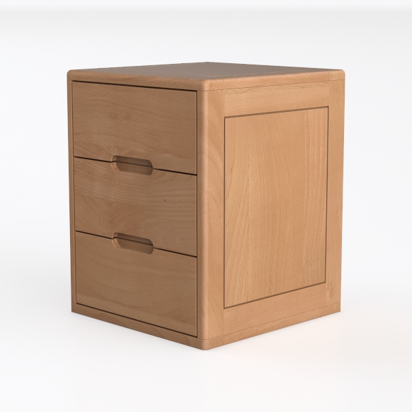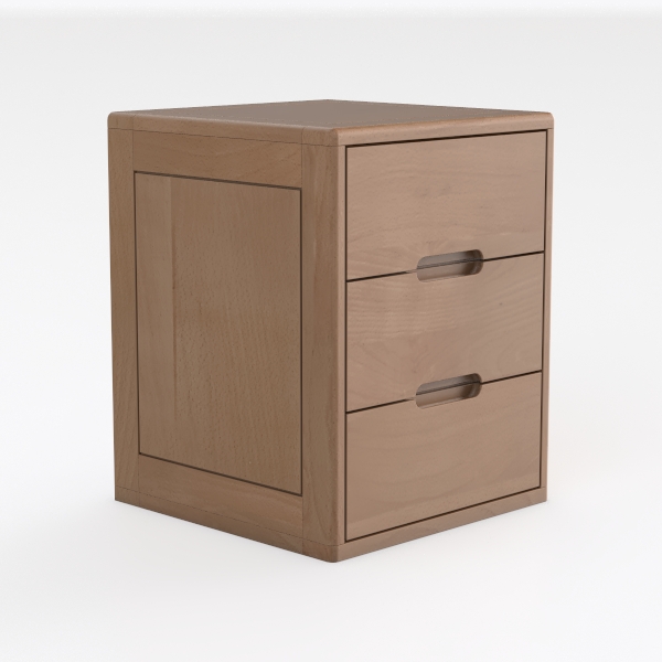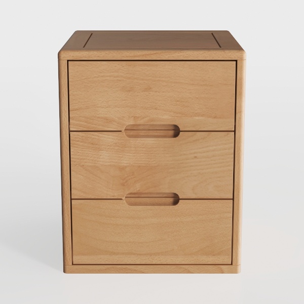 Crafted with natural simplicity, this wooden cabinet draws inspiration from Scandinavian design, blending functionality with warm, organic charm. Its smooth, sanded surface reveals rich, natural wood grain, offering tactile warmth that feels both rustic and refined. Perfect for a minimalist bedroom or cozy living room, it pairs beautifully with linen decor and potted greenery, enhancing a serene, uncluttered aesthetic. Three spacious drawers provide ample storage, with smooth gliding mechanisms and rounded edges for safe, practical use, making it an ideal bedside or side table companion.