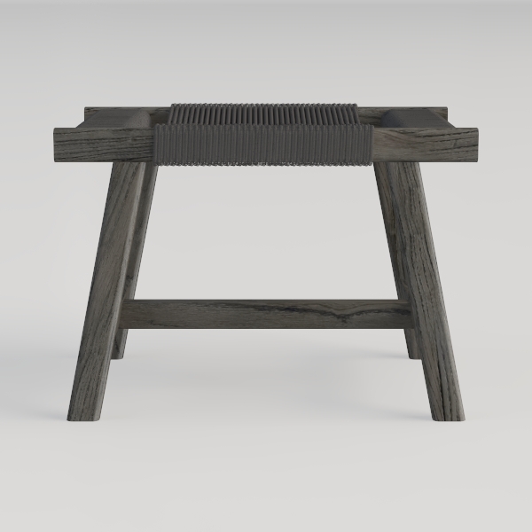 Inspired by organic craftsmanship, this piece blends natural elements with modern simplicity. Raw wood grain with visible knots and a weathered gray hue creates a warm, tactile look. Ideal for Scandinavian or bohemian spaces—pair with linen cushions and potted plants. Stable A-frame legs ensure sturdiness, woven seat offers soft comfort for seating or small items.